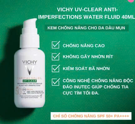 – Kem chống nắng cho da dầu mụn Vichy CAPITAL SOLEIL UV CLEAR với chỉ số chống nắng SPF 50+ và PA++++ bảo vệ da khỏi tác hại của ánh nắng mặt trời, ngăn ngừa và cải thiện mụn hiệu quả.